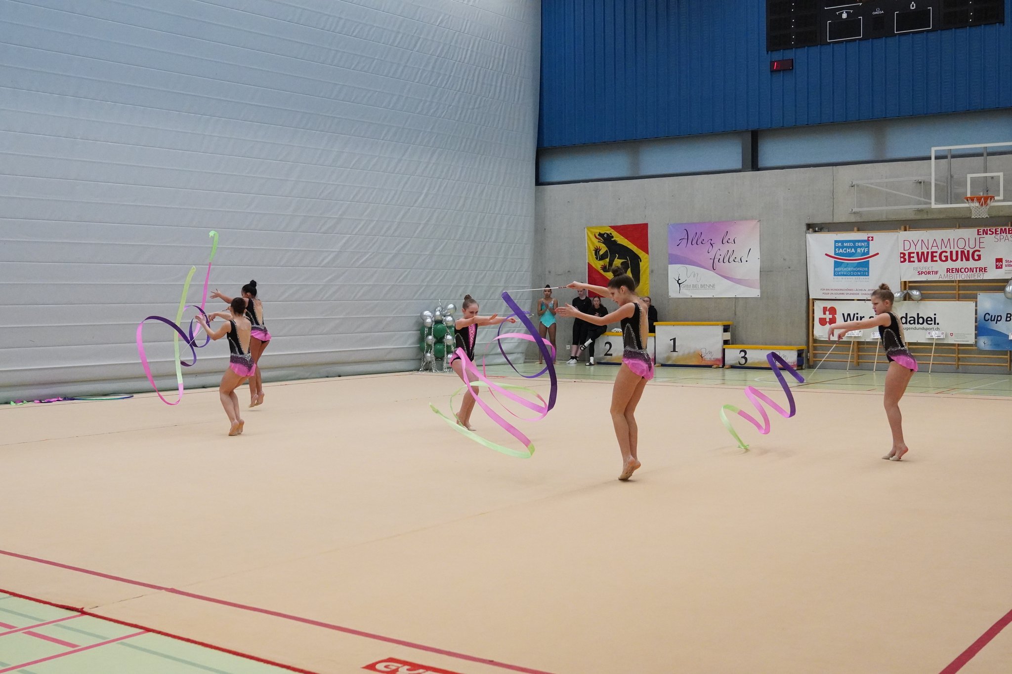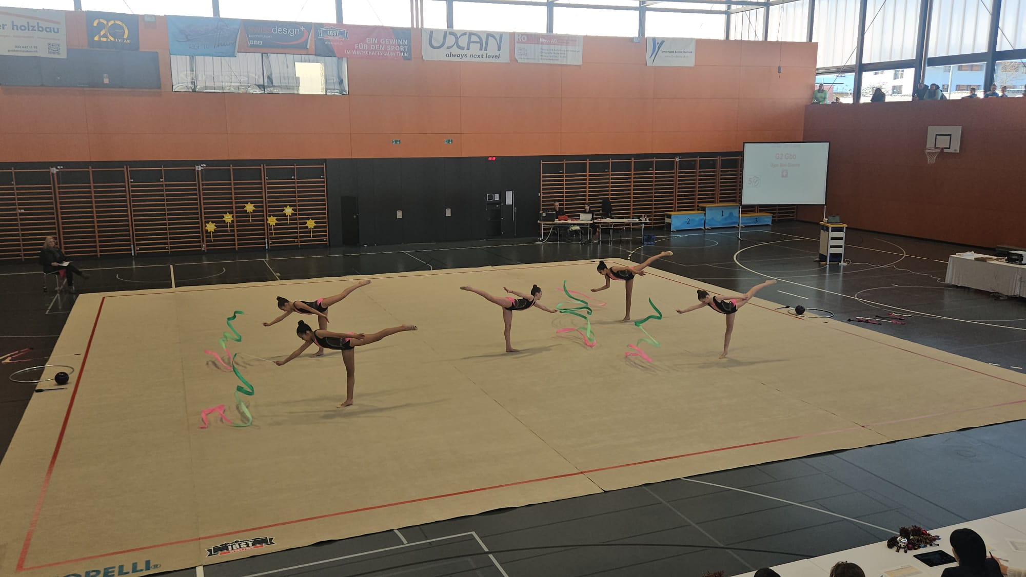 als auch Gruppenübungen absolvieren. Sie beginnen, mit Handgeräten zu arbeiten.