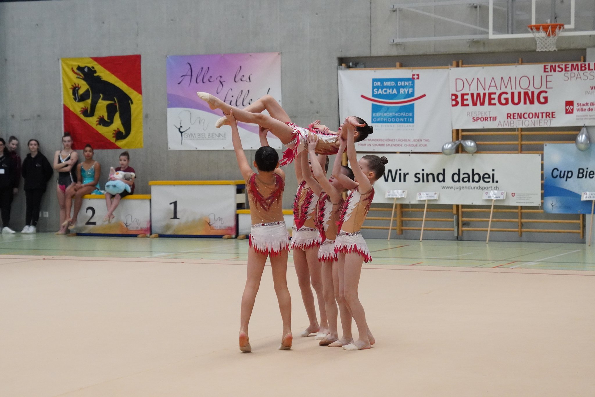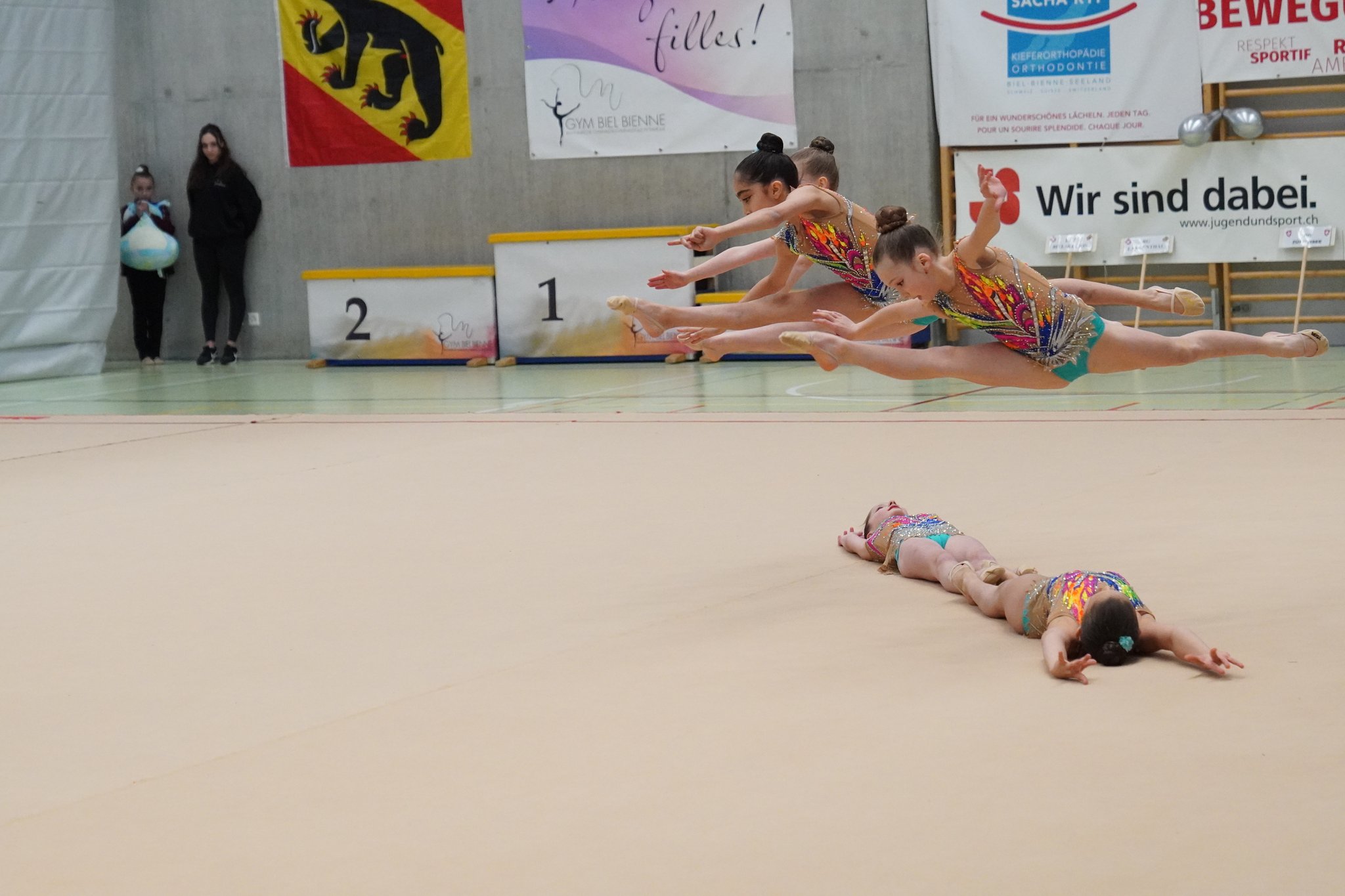 Die sportartenspezifischen Bewegungen werden immer komplexer und das Training wird intensiver. Die Gymnastinnen nehmen an regionalen und nationalen Wettkämpfen teil, wobei sie sowohl Einzel-