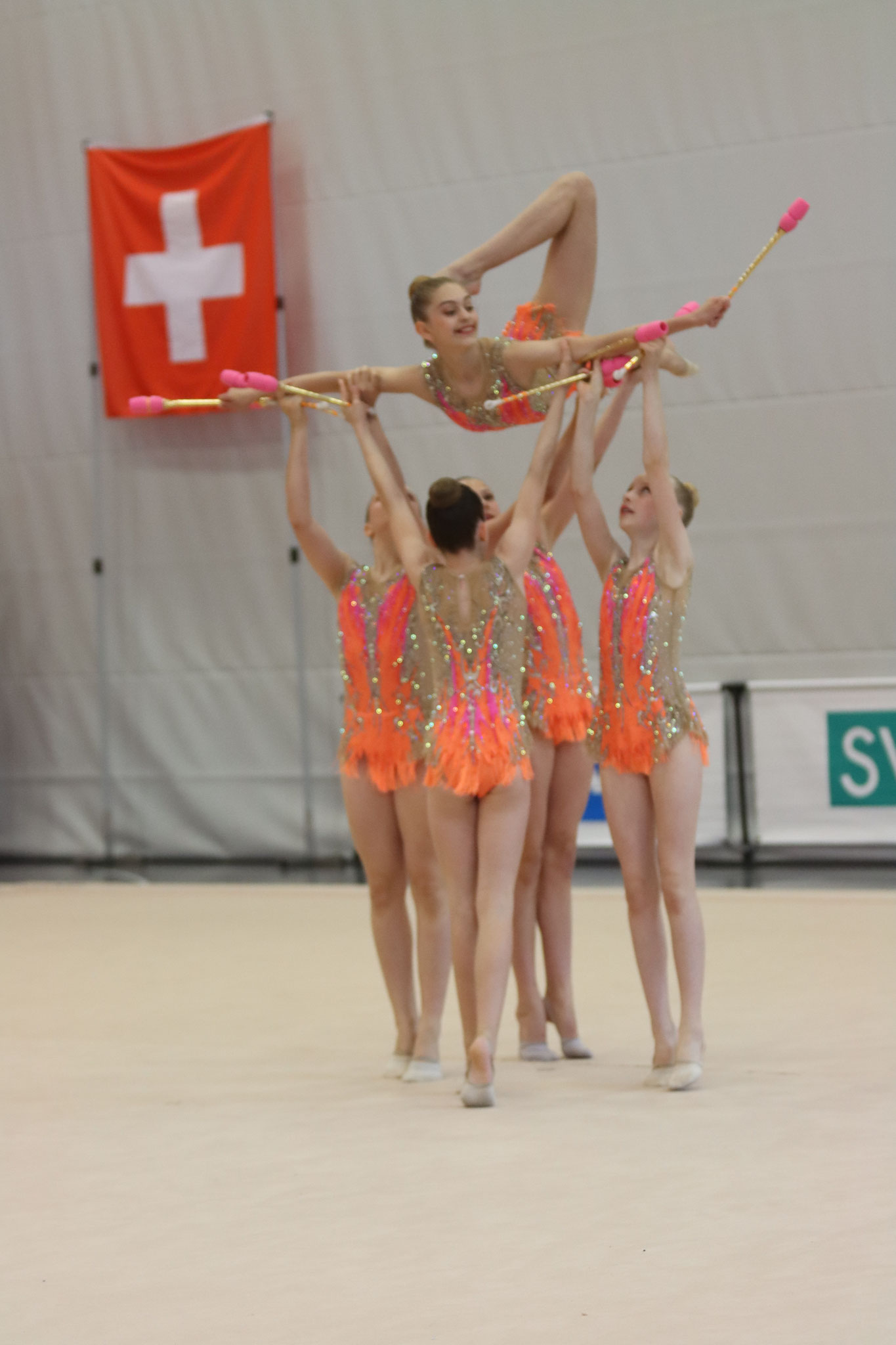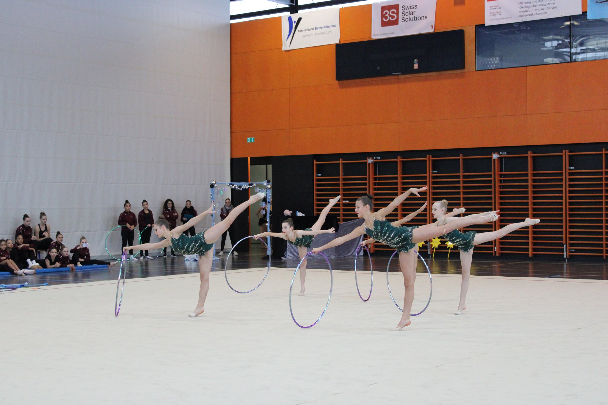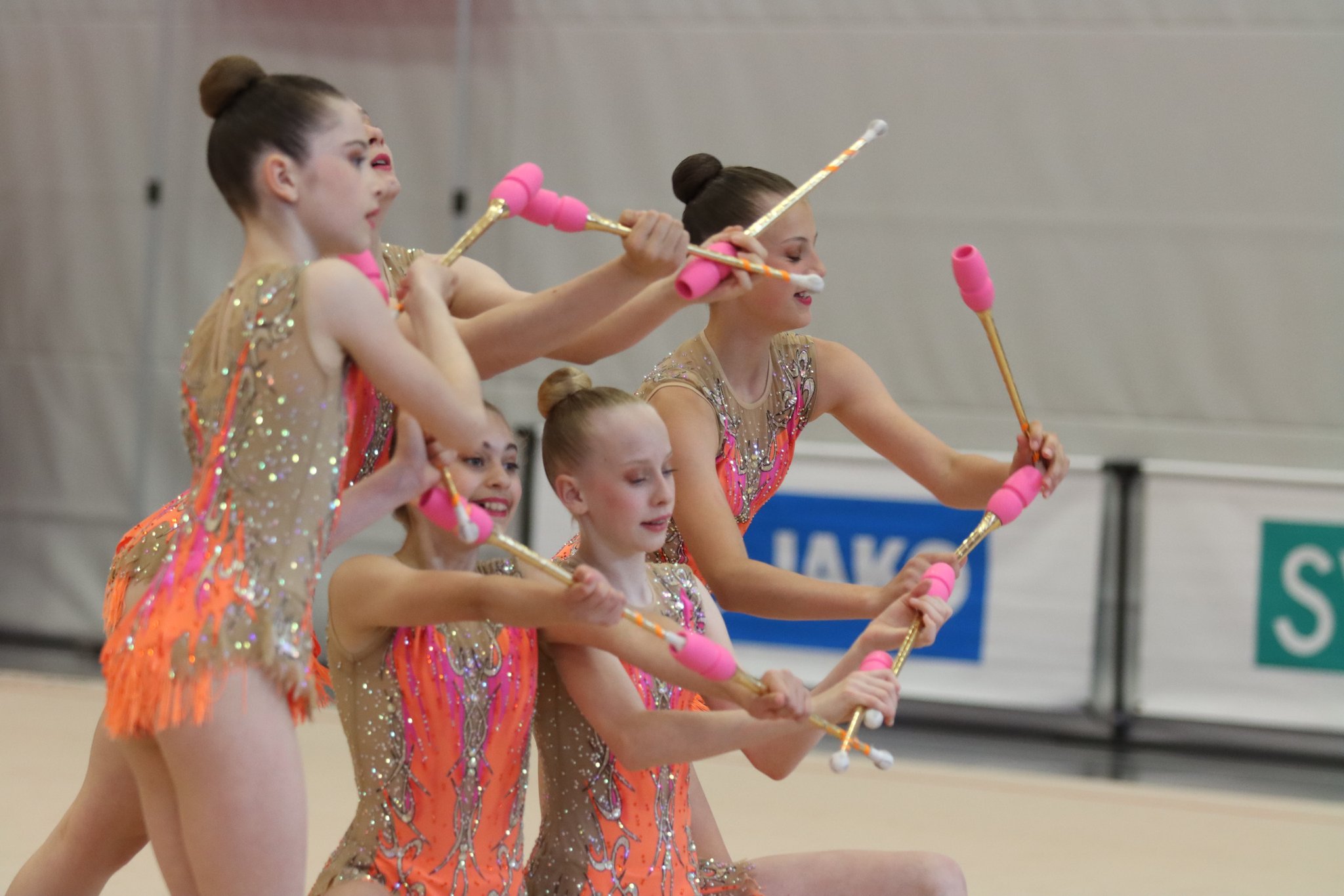 Die Juniorinnen haben das Ziel, die Gruppenübungen mit Handgeräten zu perfektionieren. Sie trainieren sehr intensiv, um ihre Übungen bei den Meisterschaften mit möglichst wenig Fehlern präsentieren zu können.